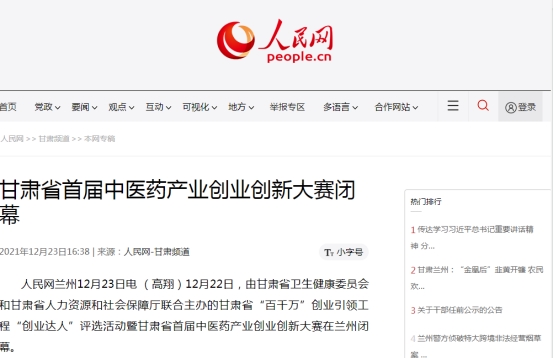 此次大賽也受到了媒體朋友的高度關注,相繼由人民網(wǎng)、中新網(wǎng)、今日頭條、試聽甘肅、新甘肅、甘肅青春調(diào)頻等多家媒體相繼報道了甘肅普安制藥股份有限公司在此次大賽中獲得創(chuàng)新組一等獎及“創(chuàng)業(yè)達人”稱號的事宜。