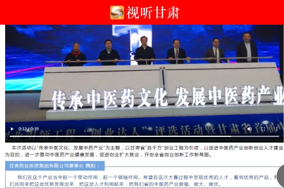 甘肅藥業(yè)投資集團魏陽董事長以特邀嘉賓身份出席此次中醫(yī)藥創(chuàng)業(yè)創(chuàng)新大賽開幕典禮,在觀展后被甘肅省廣播電視總臺、視聽甘肅、今日頭條、甘肅青春調(diào)頻等眾多媒體邀請,就關于此次中醫(yī)藥產(chǎn)業(yè)創(chuàng)業(yè)創(chuàng)新大賽做了相關的采訪。
