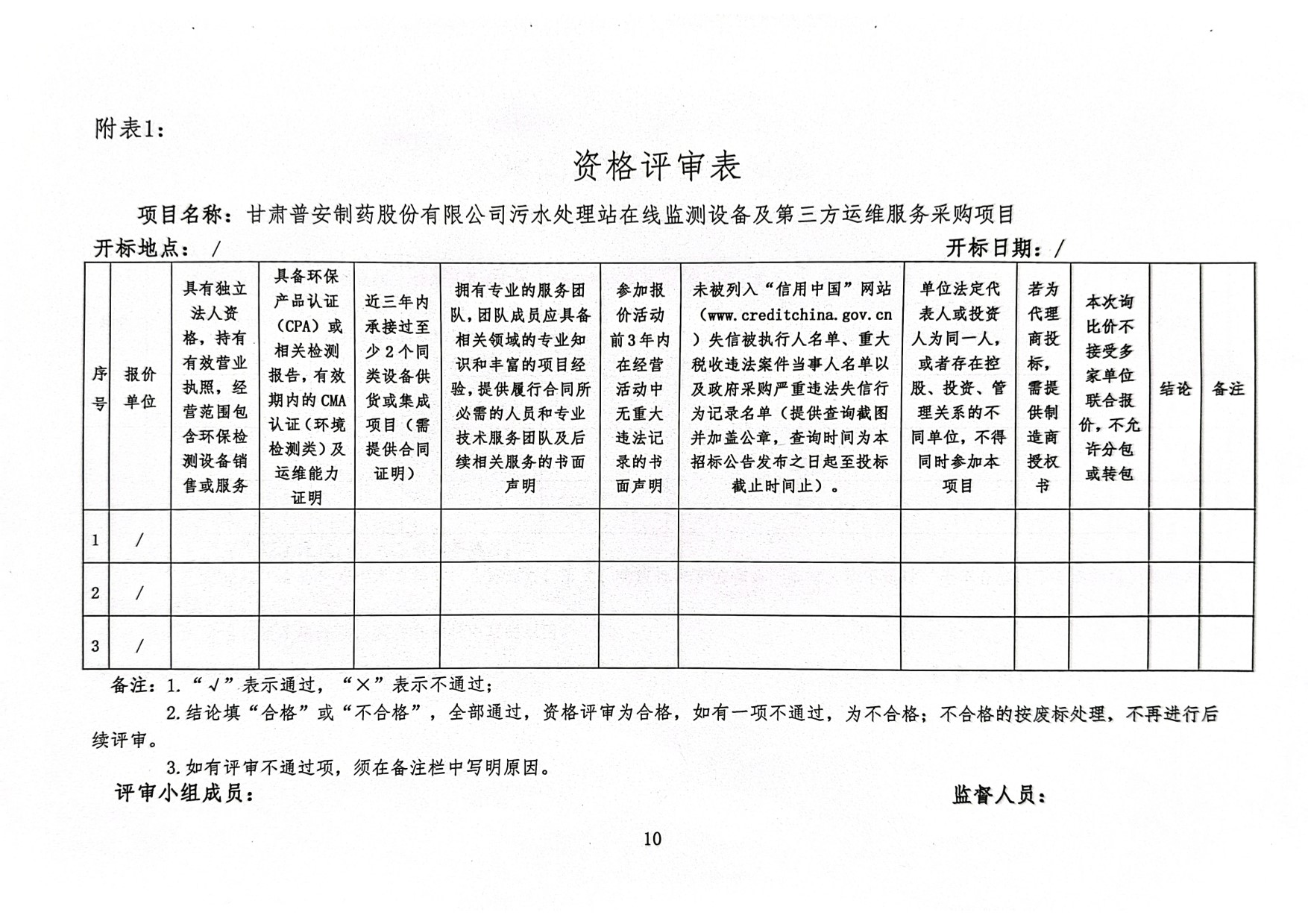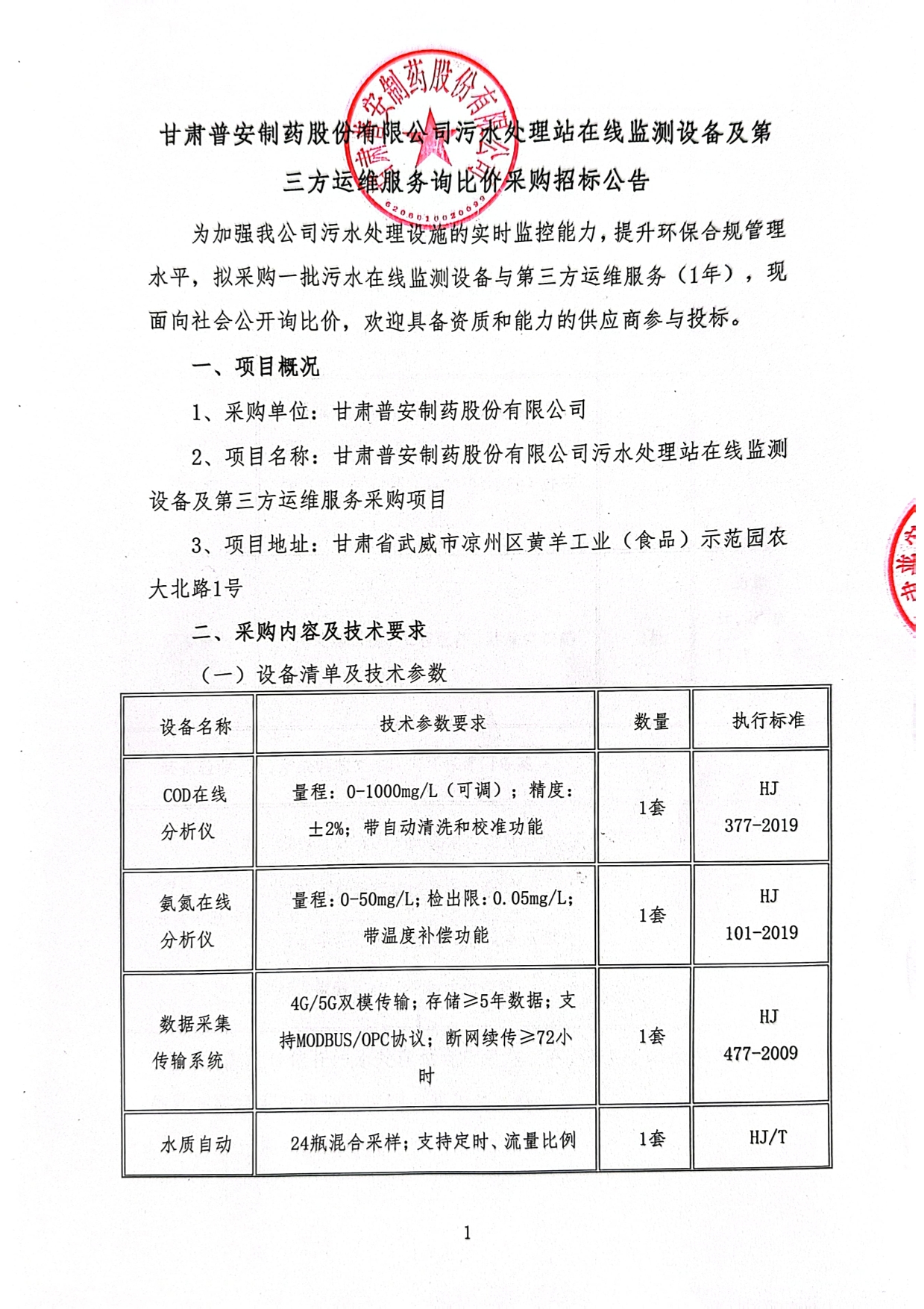 甘肅普安制藥股份有限公司污水處理站在線監(jiān)測設(shè)備及第三方運(yùn)維服務(wù)采購項(xiàng)目