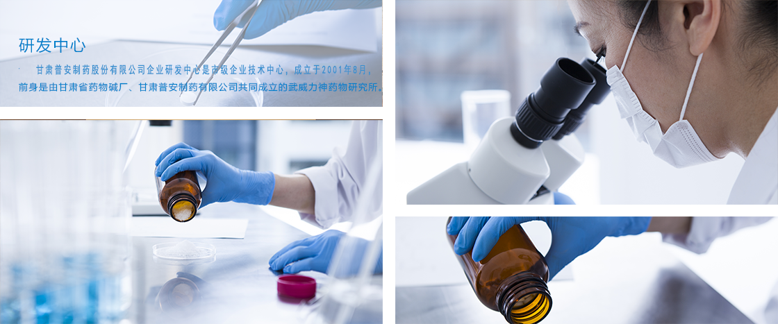 甘肅普安制藥股份有限公司企業(yè)研發(fā)中心是市級企業(yè)技術(shù)中心,成立于2001年8月,前身是由甘肅省藥物堿廠、甘肅普安制藥有限公司共同成立的武威力神藥物研究所。經(jīng)過不斷的發(fā)展,研發(fā)中心已經(jīng)成為集信息收集與分析、技術(shù)創(chuàng)新、新產(chǎn)品研發(fā)、中試生產(chǎn)于一體的研發(fā)體系。